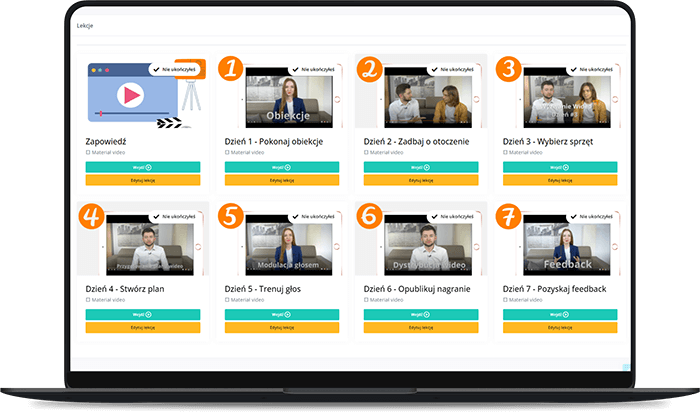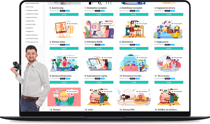 Poznasz WSZYSTKIE NIEZBĘDNE NARZĘDZIA do nagrania i opublikowania swojego pierwszego kursu online;